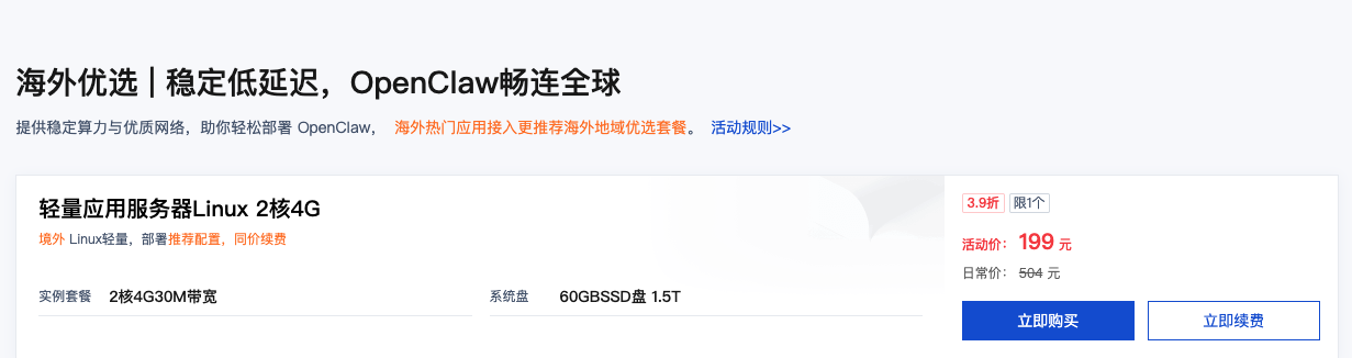 点击上方链接,直接进入 OpenClaw 专属购买页面。