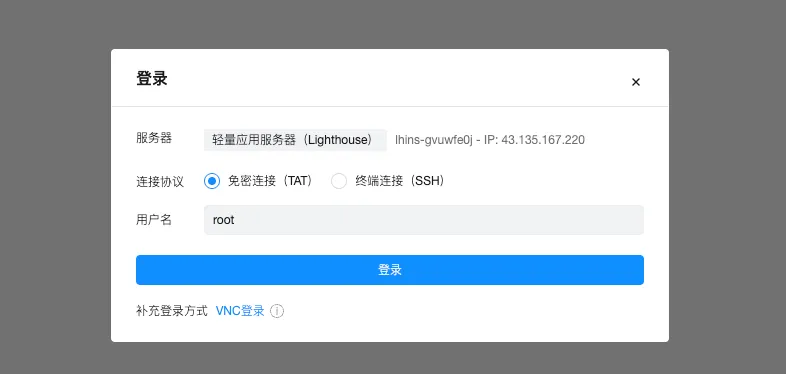 2.一键登录:直接点击服务器卡片上的 “登录” 按钮(或者进入详情页点击“登录”)。